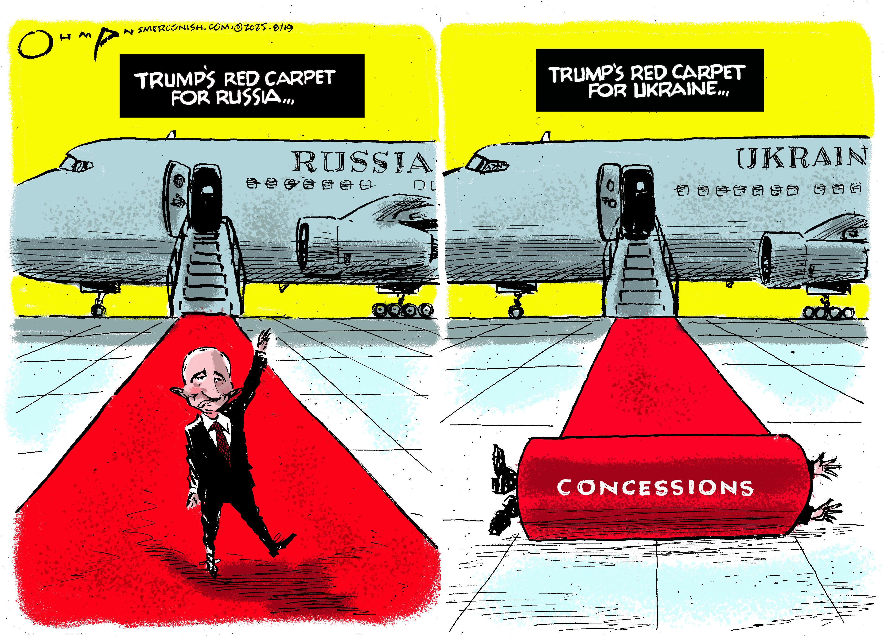 Trump’s shameless supplication (such a pleasant euphemism) to Vladimir “Ride On My Horse, Baby” Putin with a red carpet is so abjectly embarrassing and demeaning to the flaming wreckage of what’s left of the United States, I just want to defect to Mars, Venus, the moon, or anyplace not in his purview.