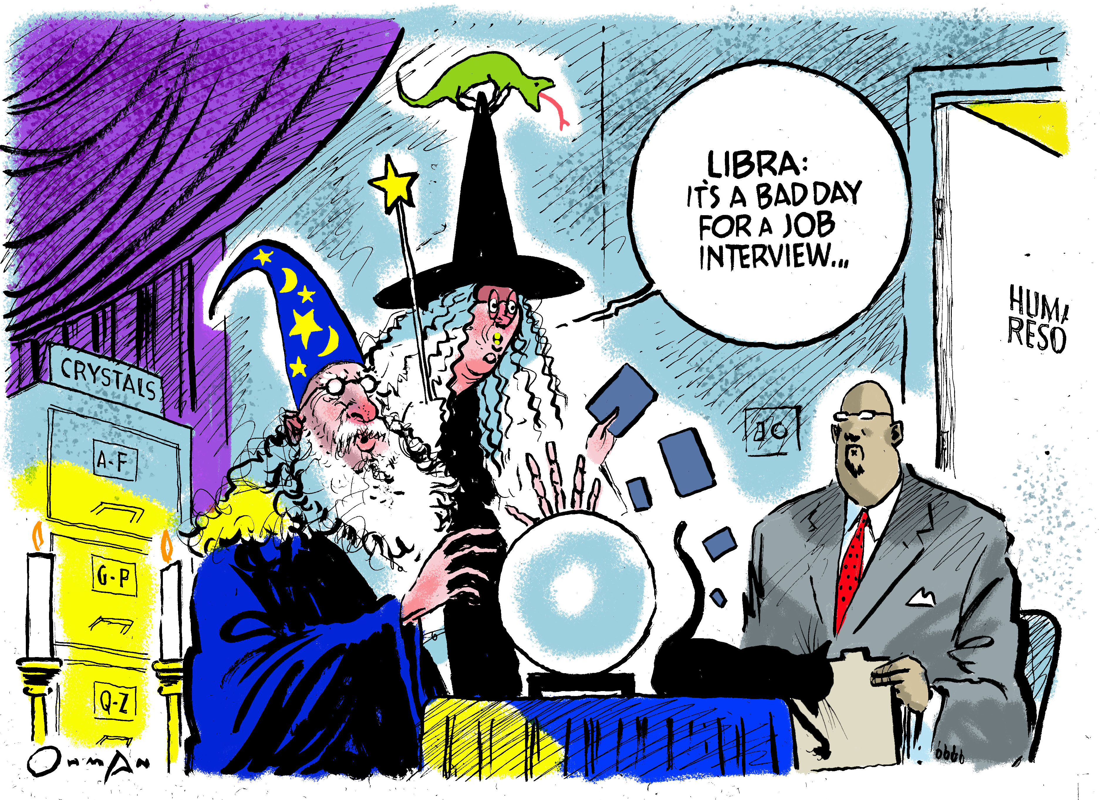 Here’s the illo I did for Comstock’s—I do the HR column art. Honestly, it’s really fun, the art directors and editors give great writing prompts, and I enjoy it. Plus, that’s my actual cat in the frame.