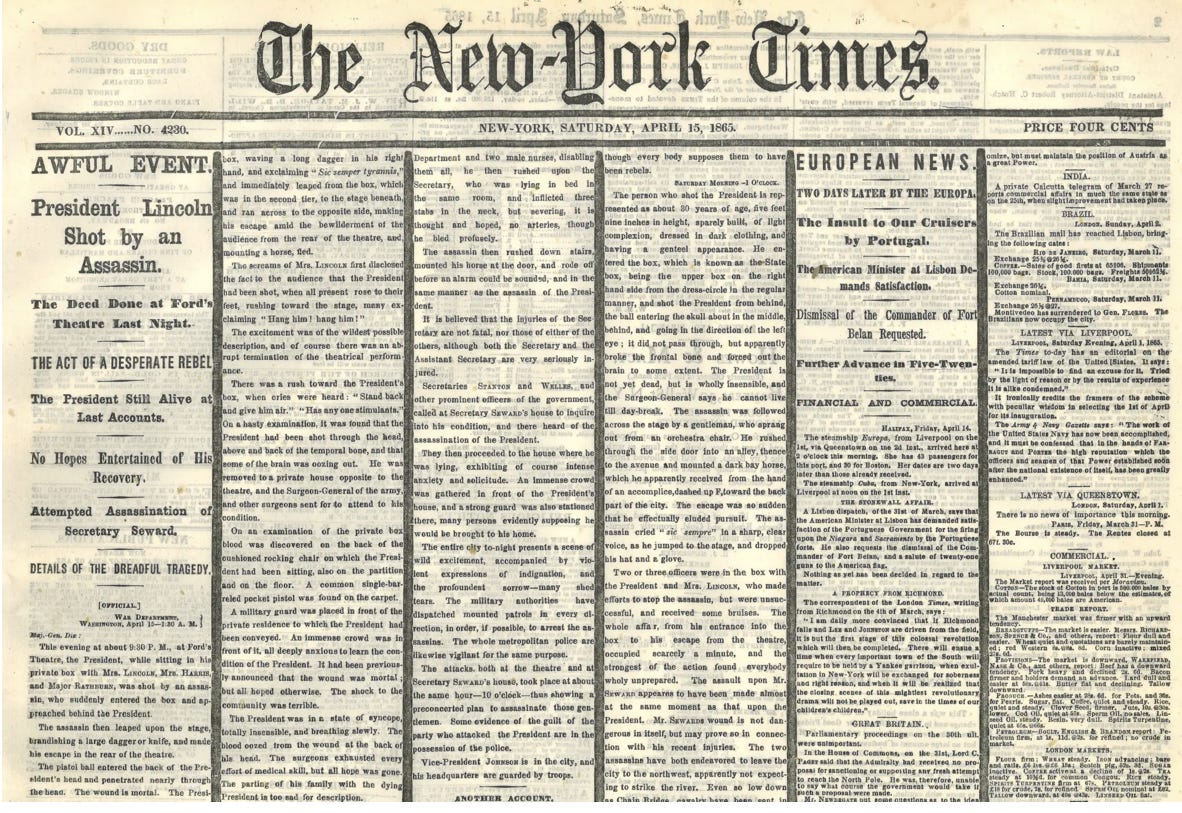 The Times story then went on to note that President Lincoln was very seriously wounded.